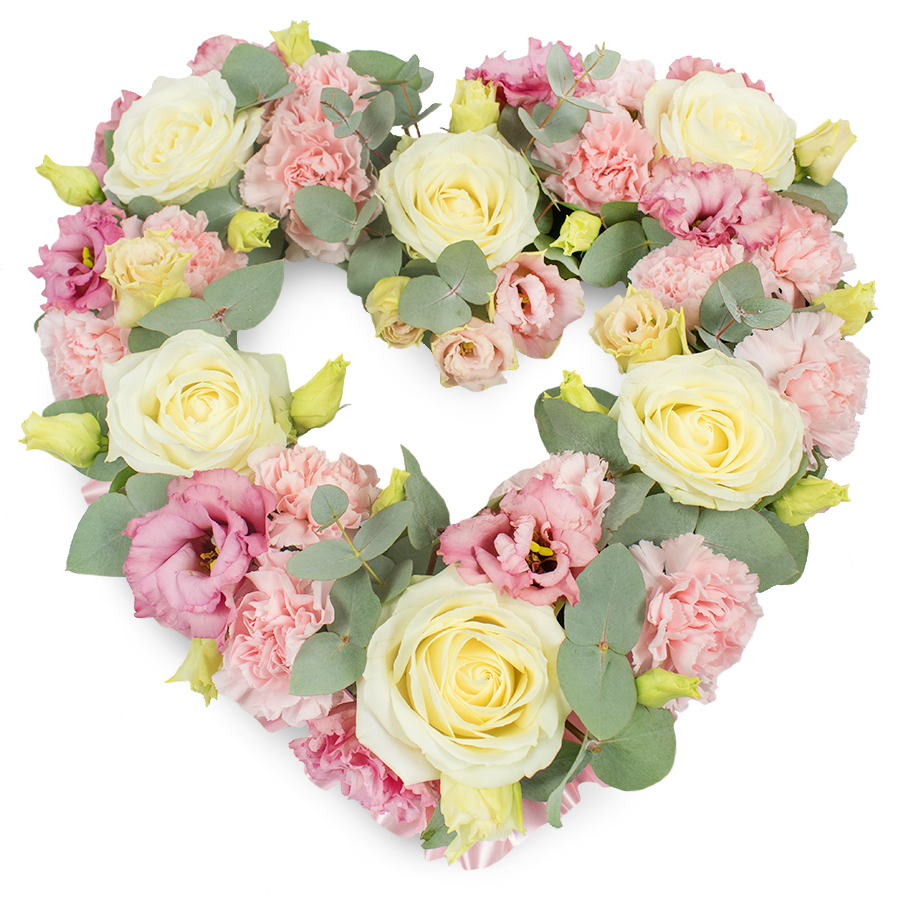 Convey your heartfelt sympathies with our beautiful tribute flower arrangement. This exquisite bouquet blends white roses, pink carnations, pink lisianthus, and eucalyptus leaves, all hand-selected to ensure each bloom is fresh and vibrant. The unique design showcases a harmonious mix of colors and textures, making it a truly special gift.